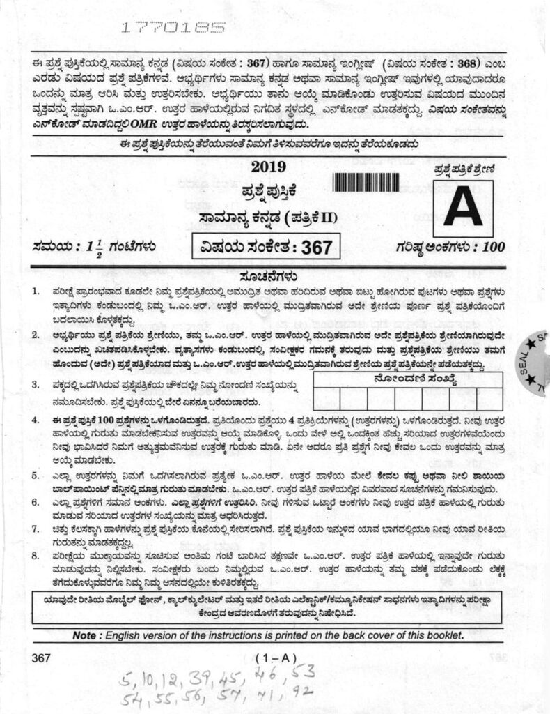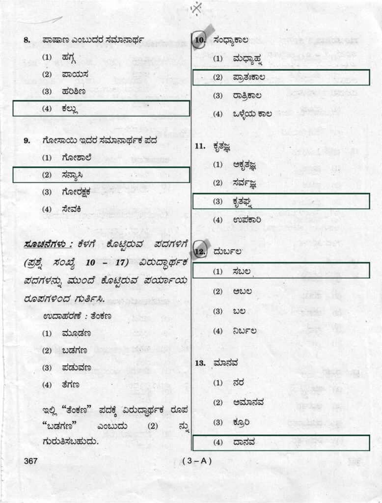 > ಸಾಮಾನ್ಯ ಕನ್ನಡ : ಪತ್ರಿಕೆ-III