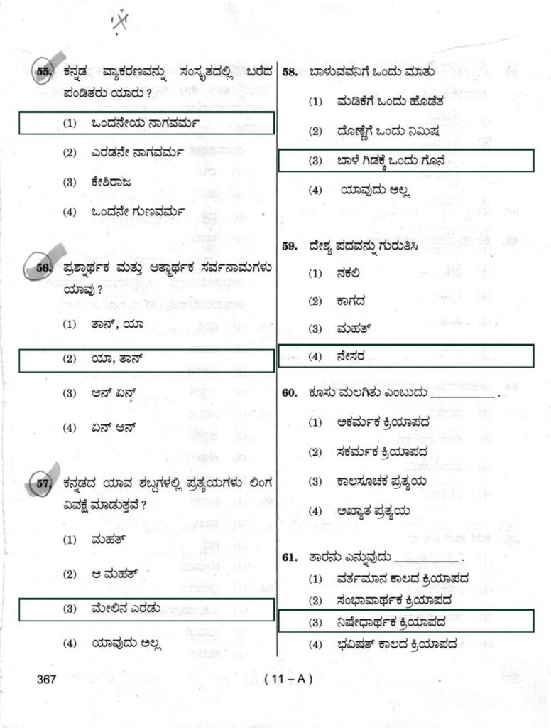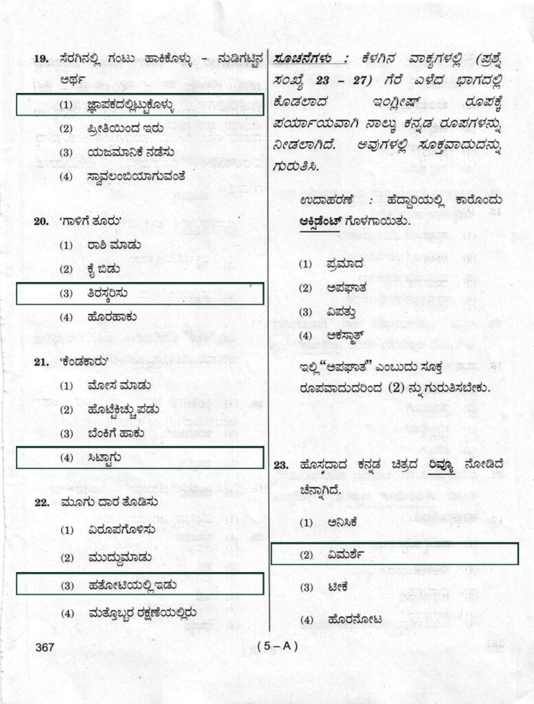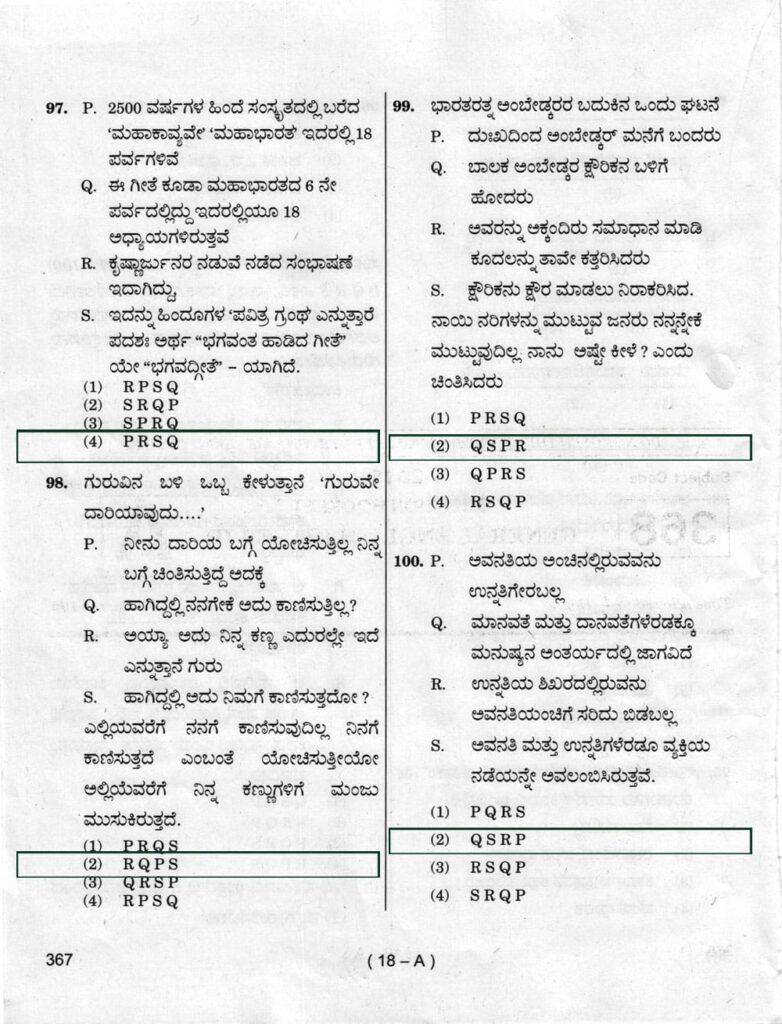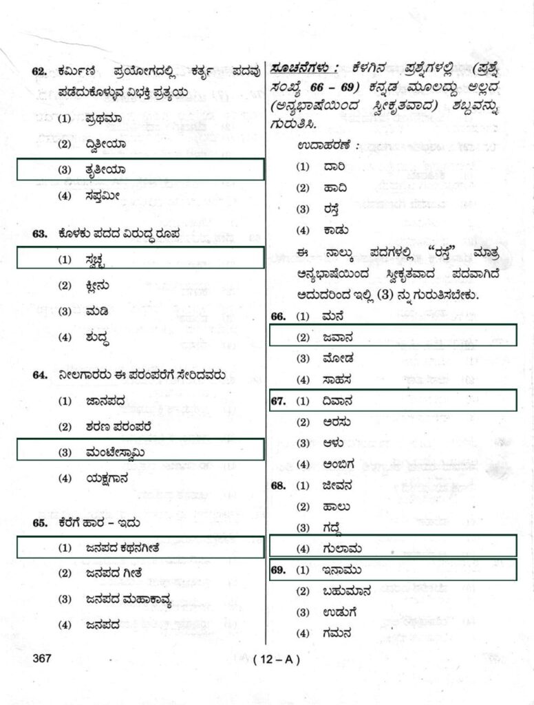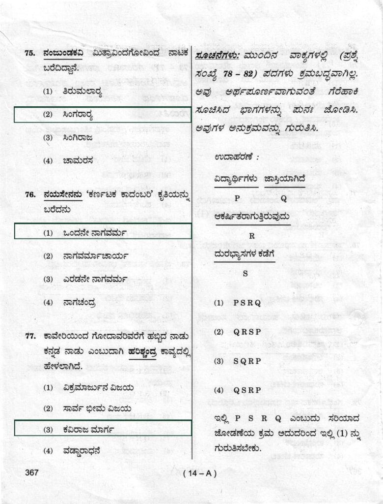 > ಪ್ರಶ್ನೆ ಪತ್ರಿಕೆ ಶ್ರೇಣಿ : A