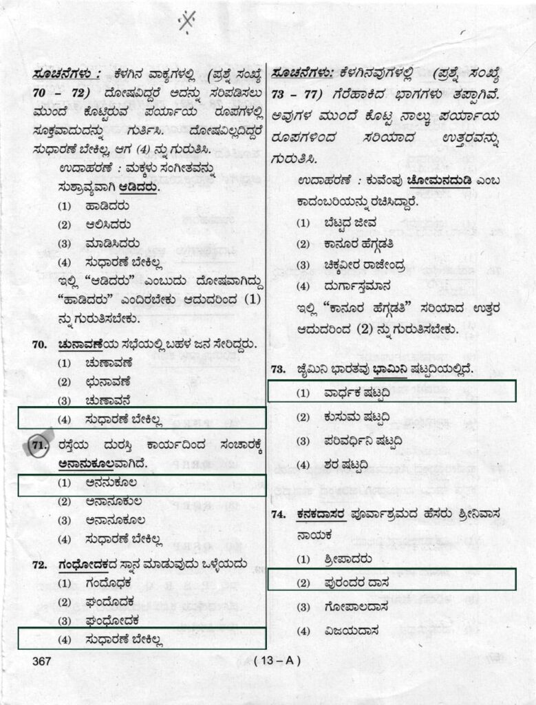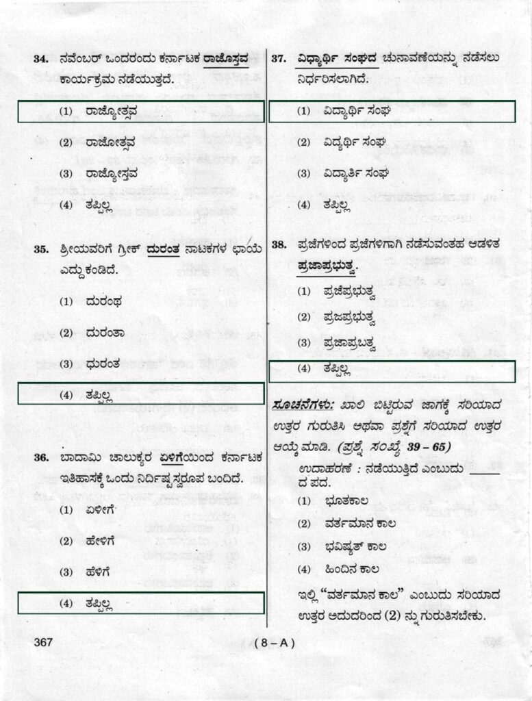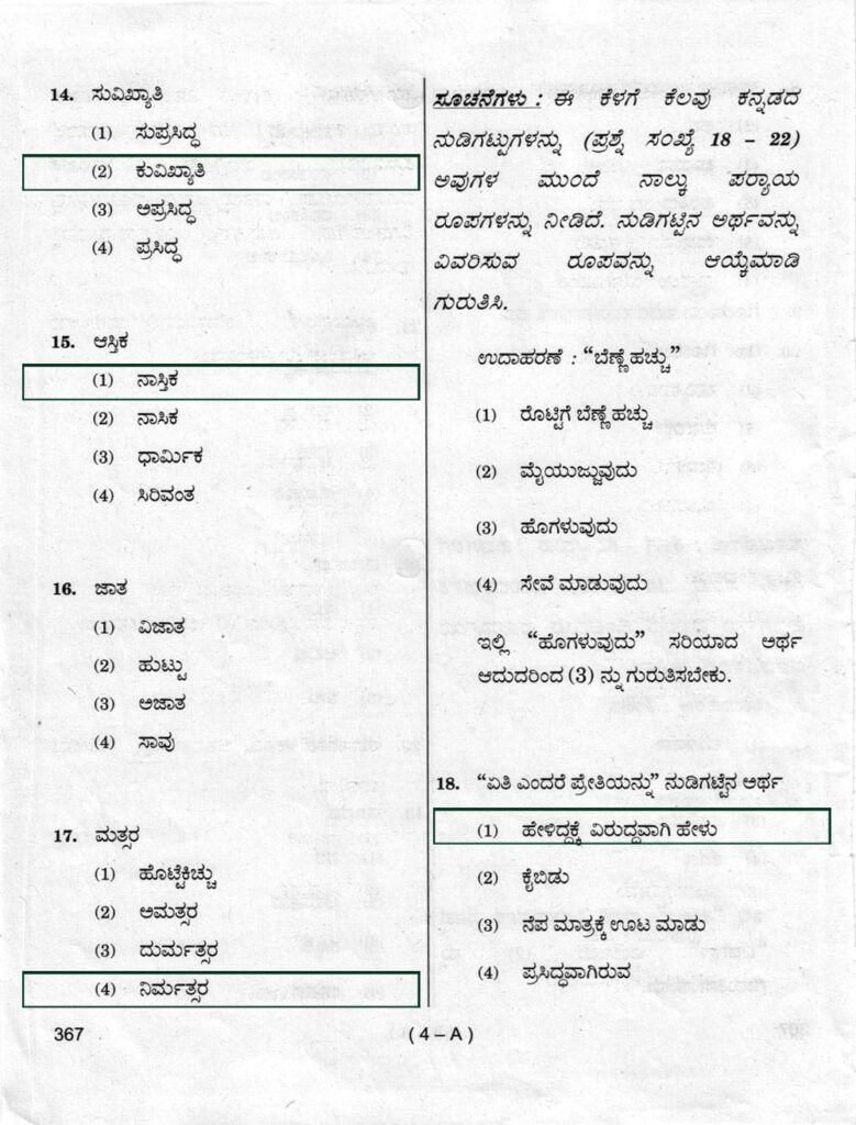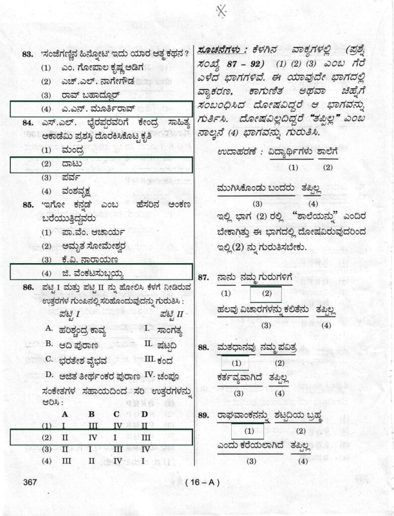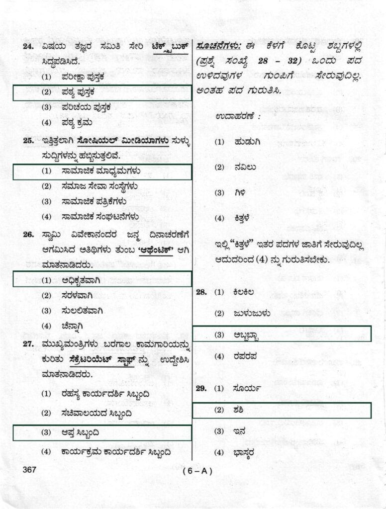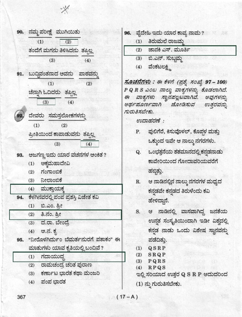 > ಪ್ರಶ್ನೆ ಪತ್ರಿಕೆ ಶ್ರೇಣಿ : A